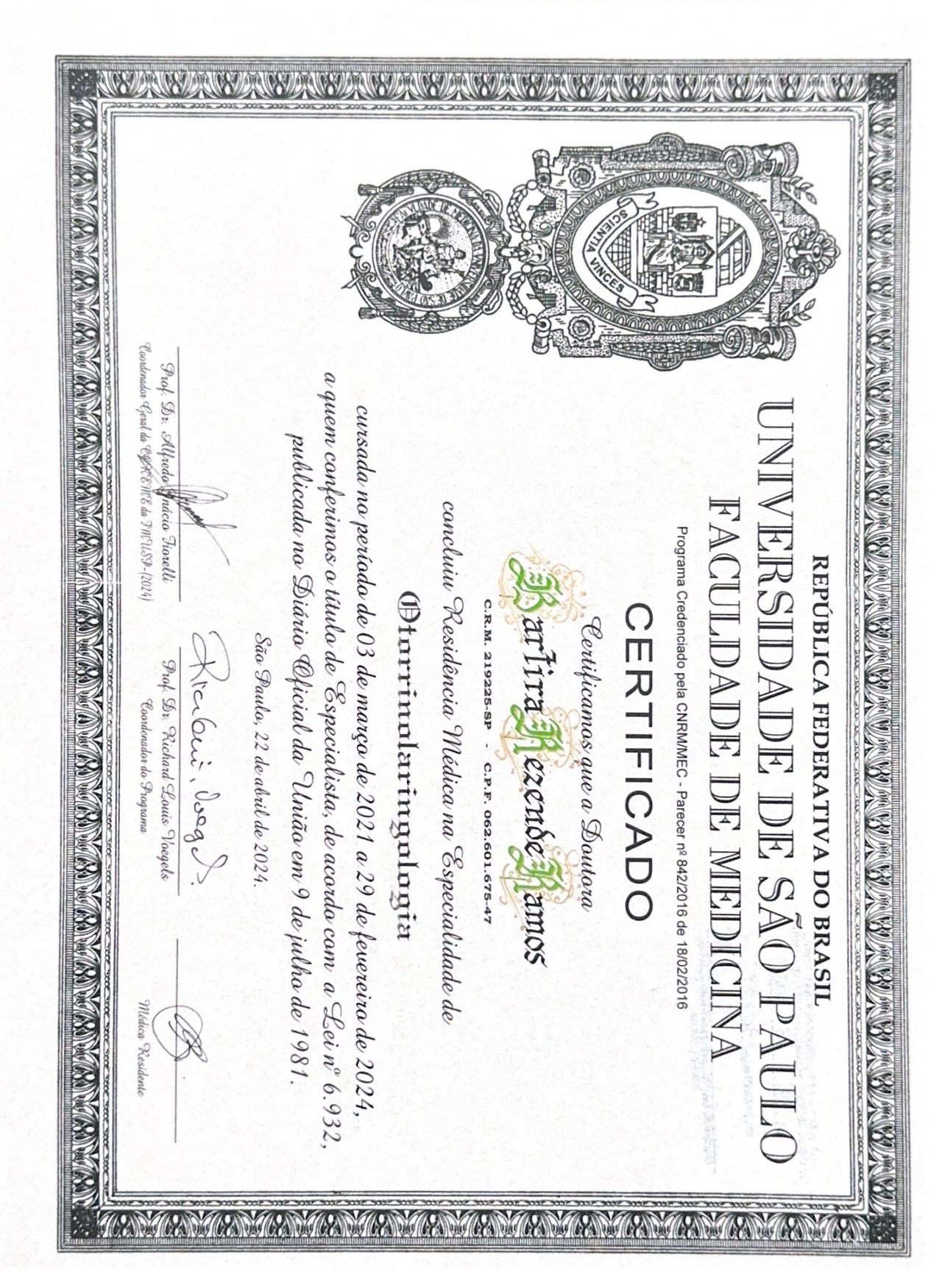Desde finalizado o programa de residência médica, além das consultas particulares e pronto-socorro de otorrino, continuo a prestar atendimento no SUS no Hospital das Clínicas.